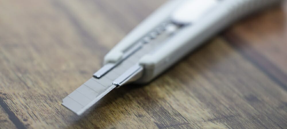 縁切りに使用する道具としては「カッターナイフ」や「皮スキ」と言われる専用の道具を使用します。これらの道具を職人さんが丁寧に屋根と屋根の隙間を処理していく事になります。