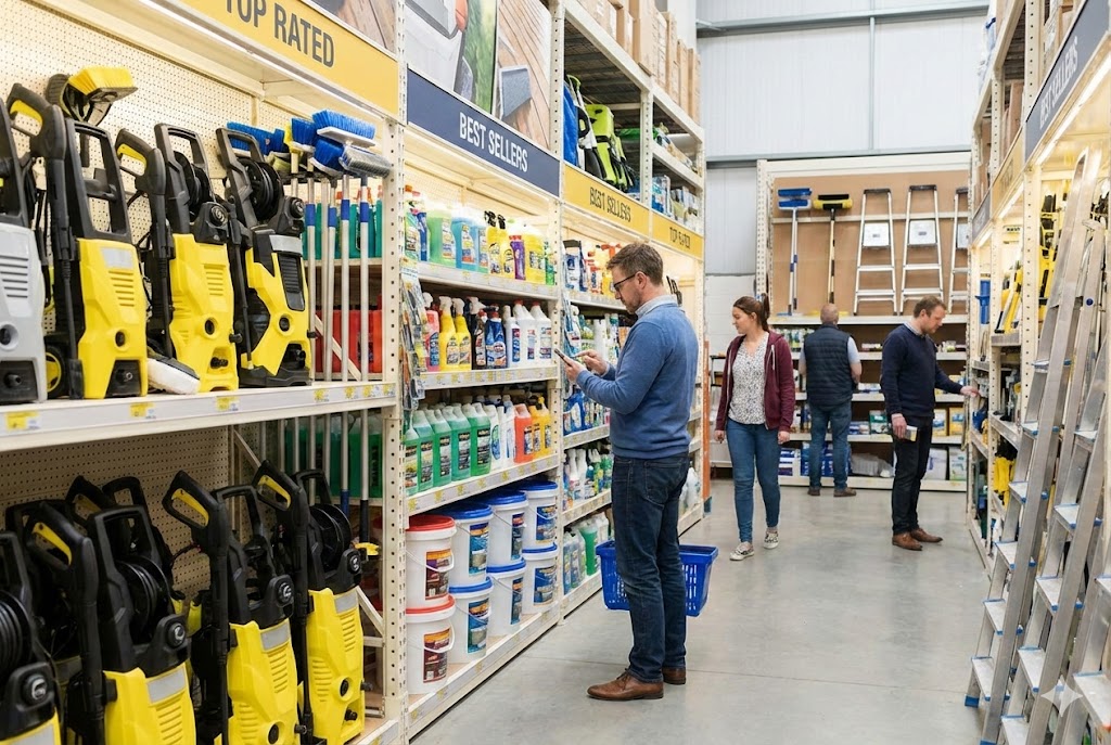 実際に触って重さや長さを確認できる。「カインズ」のオリジナルブランドなどはコスパが良く、日本住宅に合った設計が多いです。