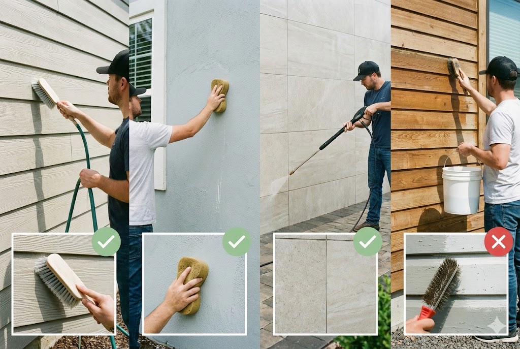 外壁の素材(サイディング、モルタル、タイルなど)によって、最適なブラシの硬さや形状は大きく異なります。