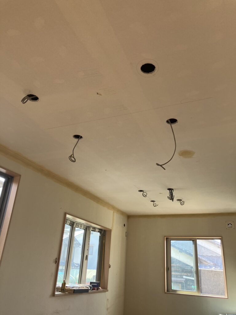 天井に丸い穴がいくつも開いているのは、ダウンライトを埋め込むための開口部分です🔧