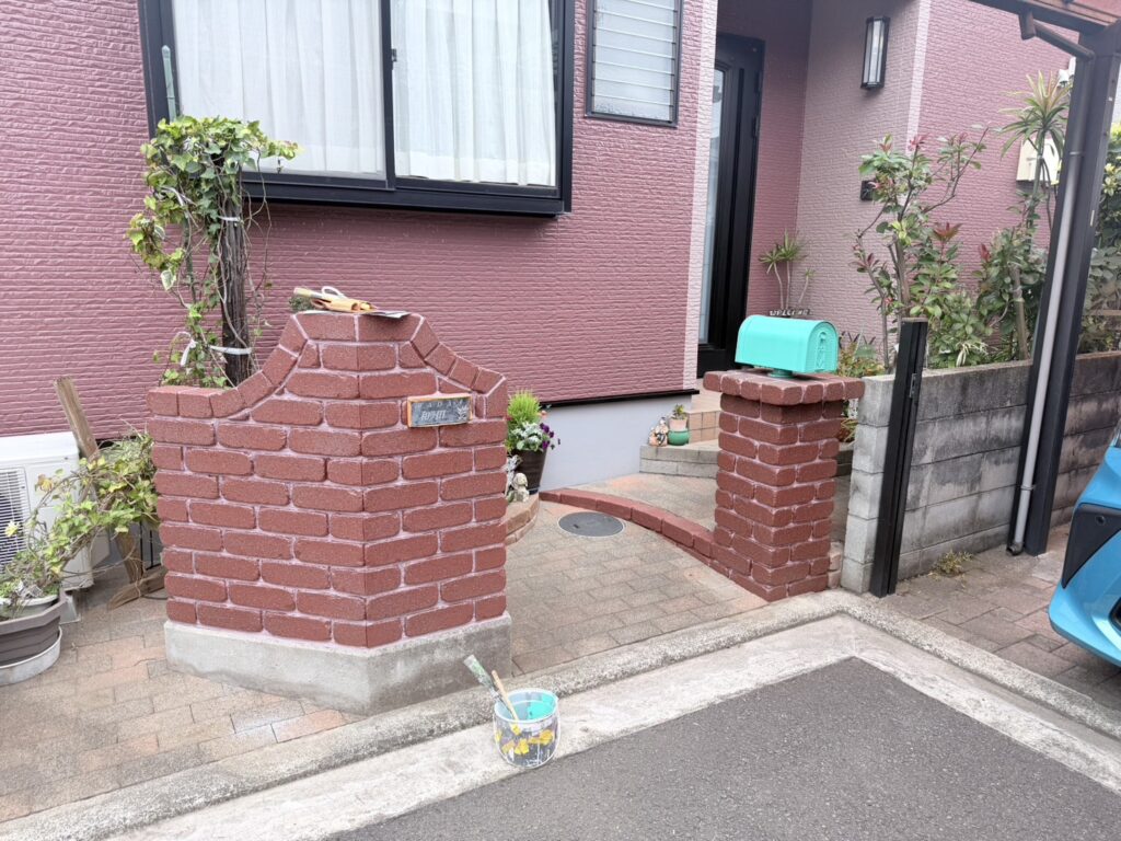 外壁だけが新しくなると、どうしても門柱やレンガ塀の古さが目立ってしまいます。