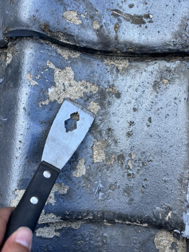 ケレン作業とは、金属屋根やセメント瓦などの表面に付着した 旧塗膜の剥がれ・サビ・汚れ を手工具で丁寧に落とし、塗装が密着しやすい状態に整える工程です。